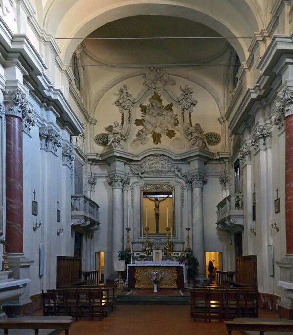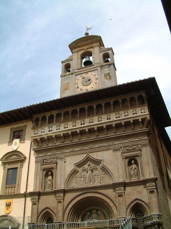 Собор, построенный в XIII веке, фасад которого не завершён, подобно многим другим церквам, имеет великолепный главный алтарь из мрамора работы Джиовани Пизано и несколько ценных образов. В прочих церквах — прекрасные картины древней тосканской школы. Базилика Сан-Франческо в Ареццо имеет знаменитые фрески работы Пьеро делла Франческа.