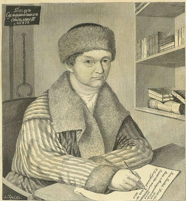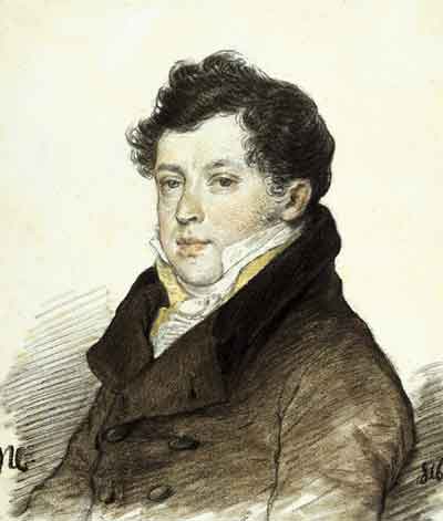 | Александр Фёдорович Воейков (1778—1839). Литератор и переводчик Воейков в 1814 году женился на А. А. Протасовой, которой Жуковский посвятил балладу «Светлана». Благодаря этому браку он породнился с поэтом. Приятельство с Василием Андреевичем помогло ему попасть в «Арзамас», однако остальные арзамасцы приняли его с неохотой и только из-за уважения к Жуковскому[30]. | В обществе у него было два прозвища: «Дымная Печурка» и «Две Огромные Руки». Оба взяты из произведений Жуковского. Первое — из баллады «Пустынник»: