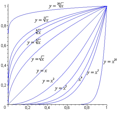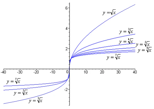 Графики функций корня