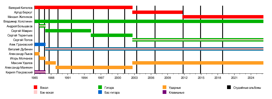 Мастер (после раскола 1987 года) Маврин (с 1998 года) Кипелов (после раскола 2002 года) Артерия (с 2003 года) Артур Беркут (с 2011 года) |