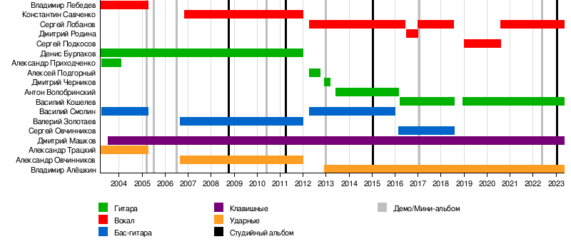 | Сергей Лобанов | вокал | 2012—2016, 2017—2018, с 2020 года | экс-Биоток, ЛобановЪ |