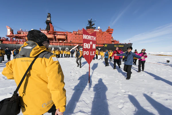 Спросом пользуется арктический экспедиционный туризм — маршруты которого проходят через острова Северного Ледовитого океана — Землю Франца-Иосифа, Новую Землю, на Северный полюс из Мурманска, вдоль побережий Балтийского, Баренцева и Белого морей, вдоль Чукотского полуострова с посещением острова Врангеля, вдоль берегов Сахалина и Камчатки с посещением Командорских и Курильских островов[14]. Кроме российских туристических компаний в организации круизов по русской Арктике также участвуют американские, английские и новозеландские компании[5]. В 2015 году было организовано пять круизов на атомном ледоколе, один из них — на Чукотку, другой — на остров Врангеля[5]. Например, ледокол «50 лет Победы» помимо основной задачи по проводке караванов в арктических морях[15] также ориентирован на выполнение арктических круизов, как правило, к Северному Полюсу с посещением заповедного архипелага Земля Франца-Иосифа[16][17]. В круизе на борту для туристов работает ресторан, спортивный зал, сауна, бассейн, библиотека, музыкальный салон и система спутникового телевидения[16]. Наиболее популярным у российских туристов туров к Северному полюсу, является маршрут: Мурманск — Земля Франца-Иосифа — Северный Полюс — Мурманск[5]. В Федеральной целевой программе «Развитие внутреннего и въездного туризма (2019—2025 годы)» круизные путешествия обозначены основным направлением развития туризма в Арктике[18][19] .