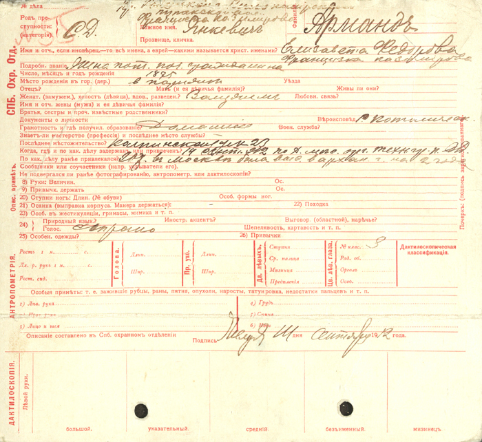 К сему присовокуплю, что из числа передаваемых лиц, Владимир и Инесса Арманд до последнего времени, по имеющимся секретным сведениям, принадлежали к местной социал-демократической организации, чем и объясняется обнаружение в их квартире представителя Центрального Комитета этой партии, убеждённого и весьма серьёзного социал-демократического деятеля Щеколдина. Последний, по имеющимся сведениям, прибыл в Москву для принятия участия на состоявшемся 9-го февраля Съезда районных представителей Центрального Комитета означенной партии... — Из материалов следствия[7]