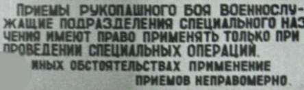Долгое время с момента появления, обучение АРБ не выходило за рамки специальной-физической и, частично, тактико-специальной подготовки. Запрету подлежало любое применение навыков рукопашного боя и отдельных приёмов в неслужебных целях. Так, ещё в 70-е годы, на информационных плакатах, размещённых в частях ВДВ и СпН, особо подчёркивалось, что военнослужащие имеют право применять приёмы рукопашного боя только при проведении специальных операций. При иных обстоятельствах применение приёмов являлось неправомерным и могло повлечь за собой дисциплинарную и даже уголовную ответственность.