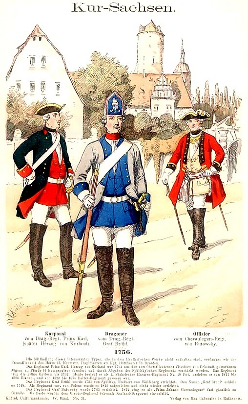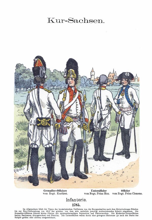 | Infanterie | neun | Erste Garde, Zweite Garde, Königlicher Prinz, Weißenfels, Diemar, Fietzner, Pflugk, Droßky, Marschall |