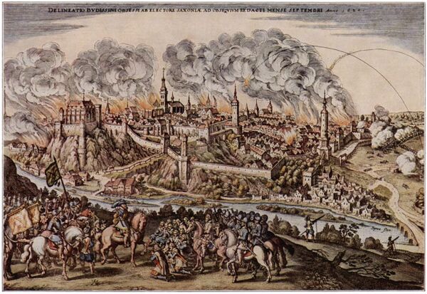 2 сентября прусские войска в 70 тыс. человек вторглись в Саксонию и осадили саксонцев в Пирне. После этого Фридрих вошёл в Богемию и разбил австрийскую армию в битве при Лобозице. Союз с австрийскими войсками не удался, поэтому саксонской армии пришлось 16 октября капитулировать перед превосходством Пруссии. Саксонская армия была взята в плен в составе 18 177 человек, которых Фридрих II включил в состав прусской армии. Однако четыре кавалерийских полка и два уланских полка, дислоцированные в Польше, избежали этой участи, и все они должны были сражаться против Пруссии на австрийском жалованье с 1757 года.