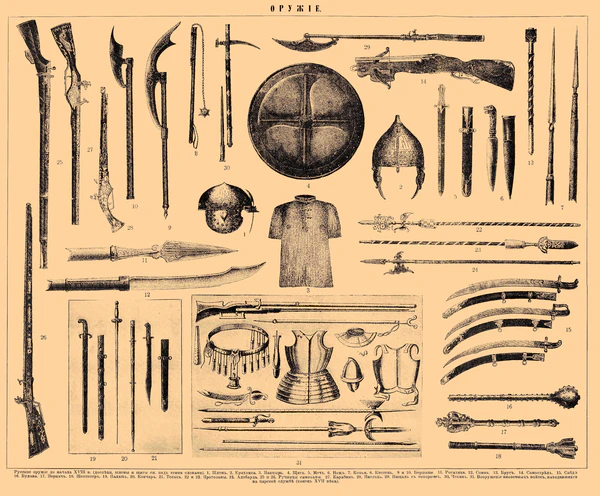 - Древне-русское вооружение // Военная энциклопедия : [в 18 т.] / под ред. В. Ф. Новицкого … [и др.]. — СПб. ; [М.] : Тип. т-ва И. Д. Сытина, 1911—1915.