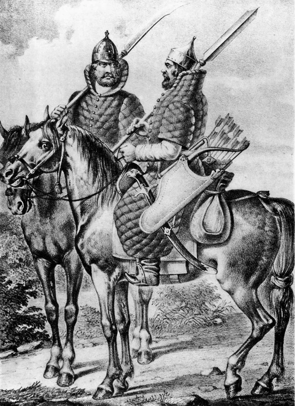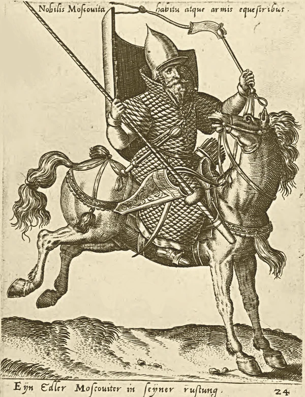 Дворяне же Государевых городов бьются разным обычаем: и лучным, и огненным боем, кто как умеет. В Государевом полку у стольников, стряпчих, дворян Московских, жильцов свой обычай: только в них бою, что аргамаки (породистые восточные лошади) резвы, да сабли остры; куда ни придут, никакие полки против них не стоят. То у нашего великого Государя ратное строение» .— Описание Русского войска, данное Козимо Медичи, во Флоренции, стольником И. И. Чемодановым (посол в Венеции), в 1656 году.[4]