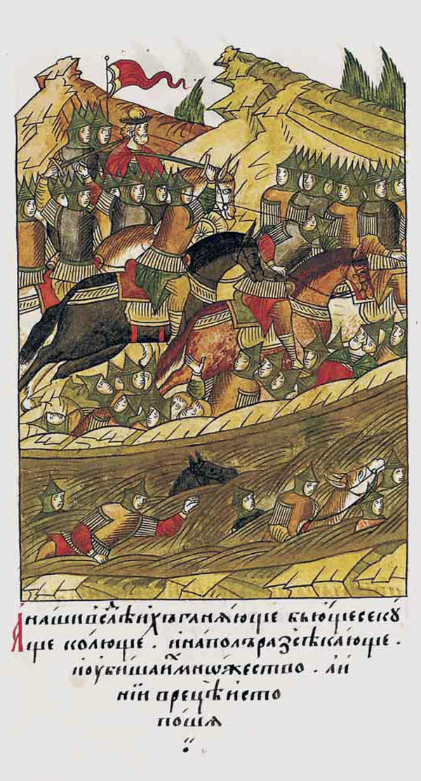 Казаки донские, терские, яицкие бьются огненным боем; а запорожские черкасы — и огненным, и лучным.