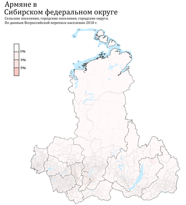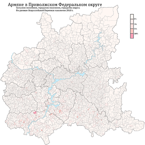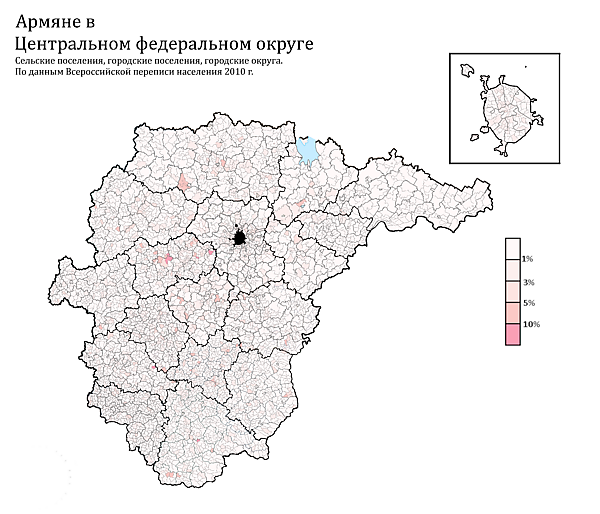 Доля армян по районам на 2010 год по переписи (указаны где их доля больше 5 %):