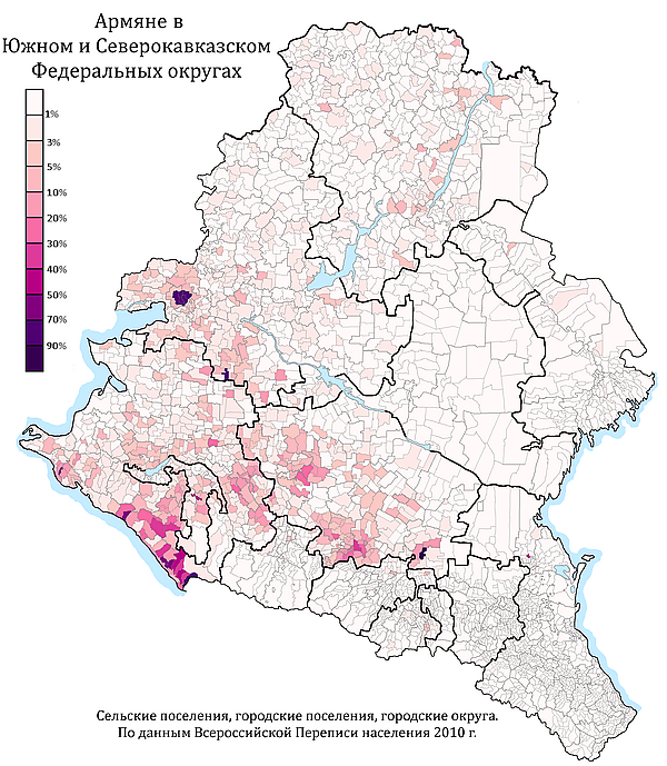 Армяне в России в 2008 году составляли большинство в Мясниковском районе Ростовской области[34].
