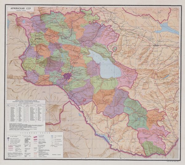 Административное деление Армянской ССР неоднократно изменялось. В 1970 году в республике было 34 района, 23 города и 28 посёлков городского типа[8].