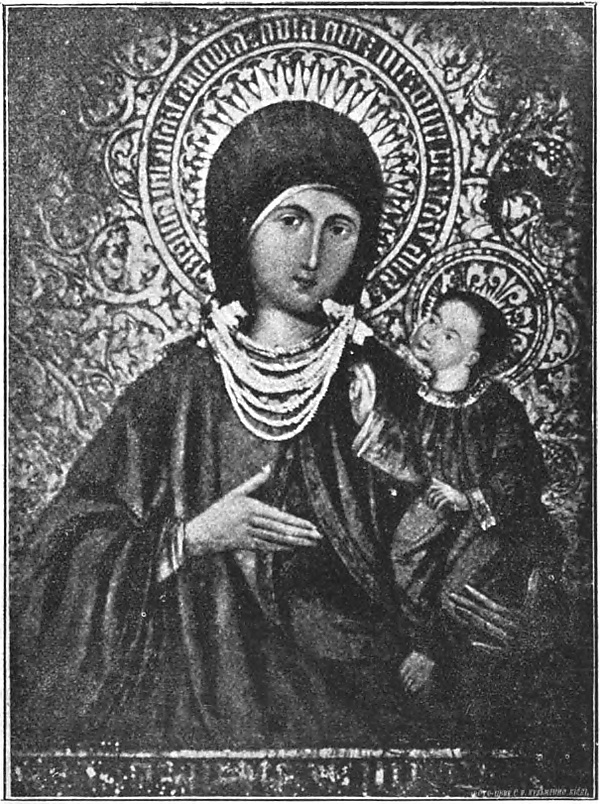 Согласно Сецинскому (1895), икона «писана на доске; живописный стиль иконы восточный. Голова Богоматери покрыта чёрной повязкой, и вся риза такого же цвета. Богомладенец, покоящийся на левой руке Богоматери, правой рукой благословляет; пальцы этой руки сложены так, как складывают православные для совершения крестного знамения. На иконе серебряная риза, украшенная драгоценными камнями и разными „вотумами“»[1].