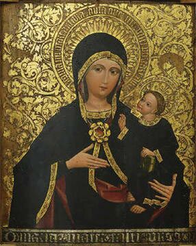Яцек Хжонщевски относит икону к типу Одигитрии Малопольской, используемому в Краковской мастерской Мастера Семьи Марии (подобную икону, по его словам, можно увидеть в Рихвалдзе недалеко от Живца) и датирует её создание концом XV — началом XVI века[7][8]. Согласно музейной атрибуции это работа неизвестного мастера чешской школы XVI века[4].