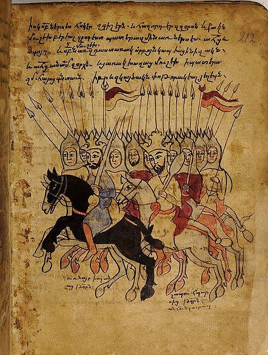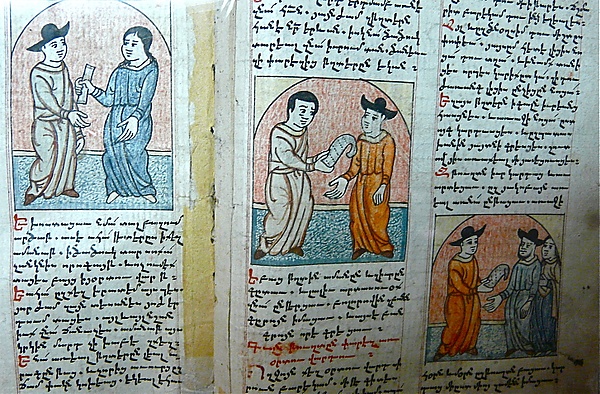 Важным деятелем армянской письменности XIII столетия является Ованнес Тавушеци, автор эротематического энциклопедического сборника, повествующего об истории армянской культуры до XIII века. В 1240-е годы его ученик Вардан Аревелци написал энциклопедический труд «Жгланк» («Беседы»)[222]. В 1265 году был составлен «Судебник» Смбата Спарапета[223], а с «Истории страны франков» Мартироса Ерзнкаци начинается формирование жанра путевых заметок в армянской прозе[224].