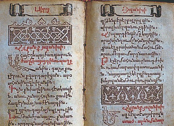 Сборники средневековых песен — Шаракноц, Гандзаран, Манрусмунк и Тагаран[23]. Уже в 1620 году Хачгруз Кафаеци составил первый сборник армянских народных песен («Песенник Хачатура Кафаеци»).