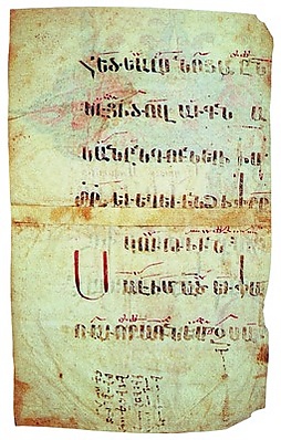 Именно в V—VI веках были созданы первые духовные песни (гимнография), его первые авторы Месроп Маштоц, Саак Партев, Иоанн Мандакуни, Степанос Сюнеци (старший), Комитас Ахцеци и др. Первоначальными простейшими формами профессиональной монодической музыки были мелодии псалмов, созданные на основе музыкальной традиции языческого культа. Позднее развивались кцурды, в дальнейшем ставшие шараканами. Армянская духовная музыка эпохи заимствовала интонационный строй крестьянской песни. Первые музыкальные произведения — шараканы, появившиеся в V веке[4][20] отличаются ясностью содержания и лаконичностью формы, их мелодии и тексты просты, в основном малообъемны. В том же столетии систематизируются гласы[3]. Со временем были созданы шараканы с более сложными концепциями, сложной ритмикой и развитой ладово-интонационной основой. Разнообразие этих произведений состояло в песнопениях гандзов и аветисов, патарагов и других видов профессиональной духовной монодической музыки. Каждый из видов отличался своими жанровыми признаками. Если в V веке была произведена систематизация гласов, то уже в VII веке Барсег Тчон[21] составил первый сборник шараканов[3] — «Чонынтир шаракноц». Из гимнографов VII столетия известен также католикос Саак Дзорапореци. Вторую систематизацию гласов произвёл Степанос Сюнеци[3] в первой половине VIII столетия. Последний ввёл в церковную музыку канон. Новым достижением в истории древнеармянской музыки становится изобретение в VIII—IX веках системы экфонетической и музыкальной нотописи — армянских невмов — хазов. Она изначально связана с именем Сюнеци. Древнейшая рукопись с хазами относится IX веку. В целом сохранились более 2 тыс. рукописей с хазамаи. О высокой музыкальной культуре древней Армении свидетельствуют труды теоретиков Давида Анахта (V—VI вв.), Давида Керакана (Грамматика) (VI в.), Степаноса Сюнеци и др., которые касались вопросов музыкальной эстетики, разрабатывали учение о гармонии, звуке и т. д.[3]. Уже в раннем средневековье в Армении была разработана теория акустики[22].