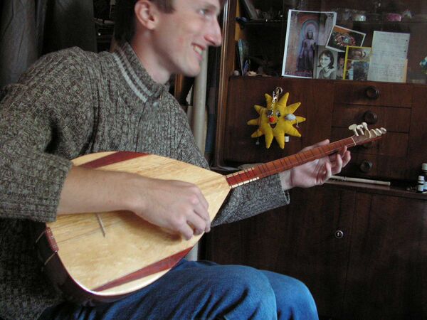 На бамбире играют сидя, держа инструмент между коленями. Можно одновременно играть на 2х или 3х струнах.