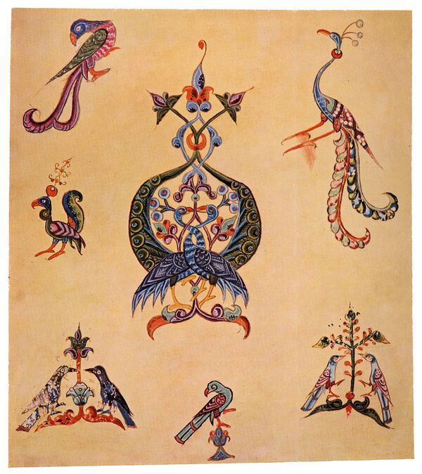 В композициях некоторых ковров важное место занимает орёл, а также крест, являющийся важнейшим элементом орнаментов армянского Средневековья.