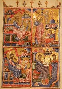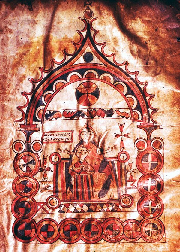 На армянских миниатюрах и фресках зачастую изображены стоящие во весь рост или сидящие на коврах, подушках и расшитых покрывалах Богородица, Христос, евангелисты и святые. Ризницы, заставки на полях, сложная вязь хачкаров, розетки, имеющиеся в средневековых армянских рукописях, вторят узорам карпетов и ковров. Изображения армянских ковров имеются также на церковных порталах XIII—XIV веков[102].