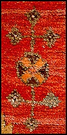- Из Фахрало, расположенного к западу от Шулавери, пришли неплотно сотканные ковры, часто с узором in многоугольников посередине, окаймленным молитвенными арками (мирабами). У них внешняя кайма из листьев и цветочных чашечек, в то время как гирлянды илизованных тюльпанов окружают центр.