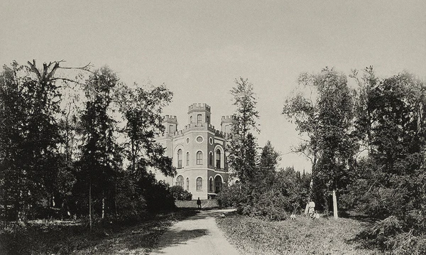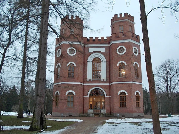 После возведения в конце XVIII века Александровского дворца, местность вокруг него стала подвергаться изменениям: был распланирован Александровский парк, на месте бастионов Зверинца возникли Белая башня (1821—1826) и Шапель (1825—1828)[1]. Архитектурный шедевр Монбижу, обветшавший к началу XIX века, подвергся полной перестройке. На смену барочной причудливости пришли простые строгие линии: автор проекта, Адам Менелас, задумал новое парковое строение в виде английского готического замка с элементами романского стиля[2].