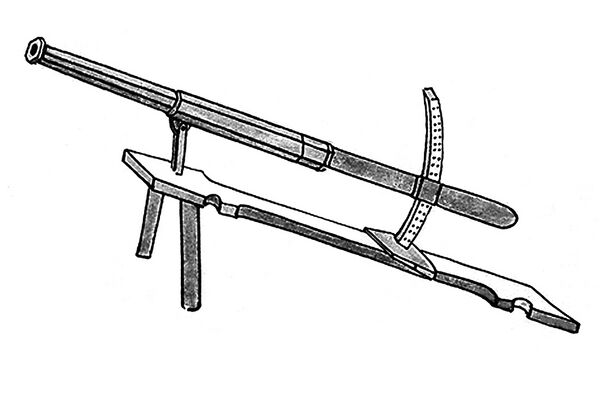 В первой половине XV века появляются примитивные устройства вертикального наведения, кремельеры (от фр. cremaillere — крюк), в виде деревянных, окованных железом коромысел, между которыми передвигался ствол орудия, или изогнутых металлических пластин с отверстиями, по которым перемещался хвостовик лафета[21]. В первой половине XVI столетия итальянским математиком и инженером Никколо Тарталья изобретён был артиллерийский квадрант, использовавшийся для регулировки угла возвышения орудийного ствола[22].
