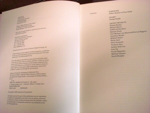 Ещё одно издательство, Cabinet (журнал), в 2008 году подготовило коллекционное издание — «Книгу марок» («The Book of Stamps»), в которой были вклеены листы с настоящими артимарками следующих художников[4][11]: