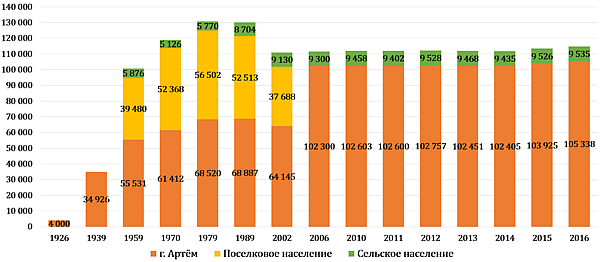 2005—2012 данные по городу Артёму, после 2012 данные включая весь Артёмовский городской округ.