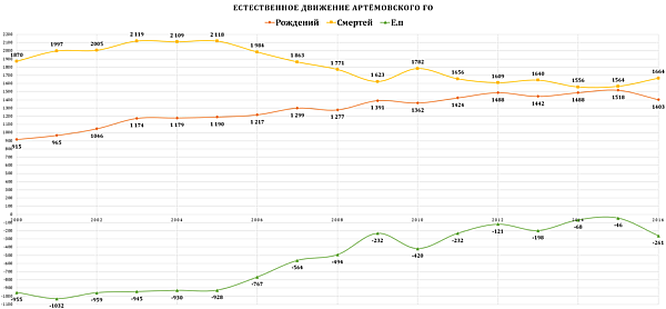 | Естественное и механическое движение Артёмовского городского округа[59][60][61][62][63][64][65][66] | ||||||||||||