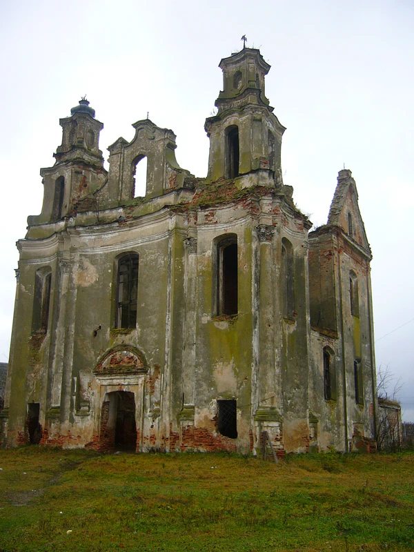 Обычный вид украинской деревянной православной церкви в эпоху Великого княжества Литовского — трёхсрубный приземистый бескупольный храм «хатнего» типа с разновеликими двускатными шатровыми (или полусферическими шлемовидными) крышами. Сруб обычно обшивался досками, клавшимися горизонтально[71].