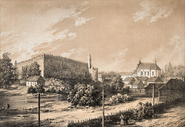 Гродненский замок возник во второй половине или конце XI века как пограничная крепость и стал ядром будущего Гродно[22]. На рубеже XIV—XV веков великий князь литовский Витовт на месте крепости выстроил из камня и кирпича (кирпичом выравнивались ряды валунов и облицовывались башни) готический пятибашенный замок со стенами толщиной более 3 метров. Около 1500 года замок перестроен. В чисто же романской архитектуре преобладала одна функция ― оборонительная, и для замковой архитектуры Великого княжества Литовского, вплоть до XV века, до развития артиллерийской техники, характерны признаки, свойственные романскому зодчеству: с развитием техники арбалетной, а позже пушечной, увеличивается высота башен и стен, усложняется композиция замковых комплексов. Верхняя церковь имела базиликальный тип, массивность и статичность форм, каменные своды. Во внешнем оформлении — барельеф, аркатура, перспективный портал. При её строительстве применялась не готическая, а вендская кладка[23].