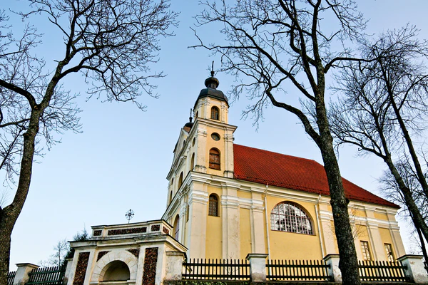 От барочного классицизма во второй половине XVIII века в некоторых архитектурных проявлениях были попытки перейти к «чистому» классицизму, ориентированному на зодчество Древнего Рима. Первым примером античного стиля на землях Великого княжества Литовского стал костёл в Жирмунтах (1788) близ города Лида, построенный придворным архитектором Радзивиллов Яном Подчашинским. В бернардинском костёле (1765) литовского городка Тельшяй видны первые признаки классицизма: это безбашенный фронтонный костёл купольно-центрической композиции. Схож с ним костёл в ансамбле монастыря ордена камальдулов в Пажайслисе (1667—1712), архитекторы Л. Фредо и братья К. Путини и П. Путини. К этому стилю относятся и костёл монастыря визитанток (1729—1744) архитектора Юзефа Поля[128], и церковь Марии Магдалины в Вильнюсе.