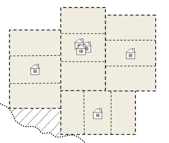 Оказала влияние на уличную планировку земельная реформа 1557 года — «волочная помера», изменившая форму землепользования и землевладения[54]. Вместо деревень скученного типа создавались новые, обязательно с уличной планировкой согласно разработанному и утверждённому плану — «Уставы на волоки». Урядовым комиссарам и коморникам предписывалось подыскивать места близ рек и озёр, находить оптимальные условия для управления деревней: устраивались так, чтобы жители семи волок могли обрабатывать одну панскую волоку[55]. Новые деревни были в основном небольшими, в 10—20 дворов. Улица проводилась по всей ширине третьего поля, вдоль нарезались участки по 3 морга под дворы. За надел огородники работали в великокняжеских или панских имениях один день в неделю без коня, а их жёны ― 6 дней за лето[56].