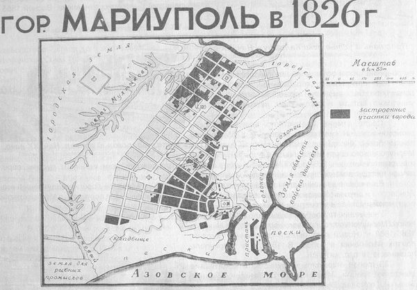 Статус города Мариуполь получил в 1778 году[1]. Первый план застройки Мариуполя (тогда Павловска) не сохранился, известны планы 1782, 1783, 1878, 1790, 1793 и 1795 годов[3]. План 1811 года, утверждённый Александром I, действовал до конца века[3]. При его составлении архитекторы ориентировались на «идеальные города» Италии эпохи Возрождения, что характерно также и для соседнего с ним Таганрога[4][3]. Созданная по этому плану часть города имеет радиально-лучевую планировку с сетчатой схемой улиц и главной городской площадью, составляющей основной композиционный центр[5]. План Мариуполя также содержал крепостные укрепления, не бывшие градообразующим ядром, как у поселений допетровского времени, но органично вписанные в природный ландшафт и логически связанные с планом[6].