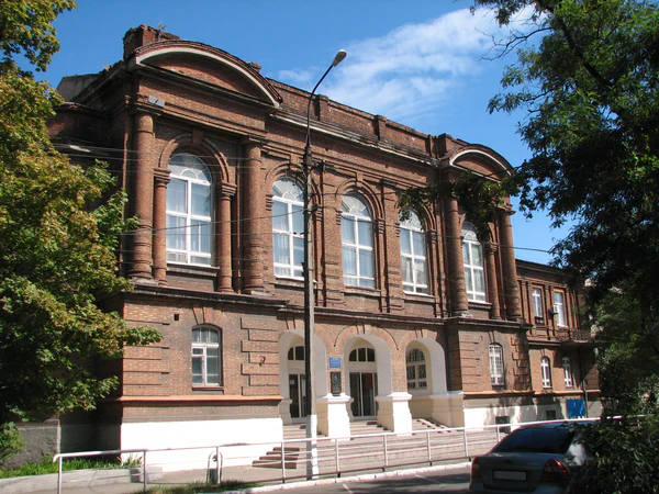 В первой половине XIX века в городе находилось 3084 жилых здания, из которых только 145 имели больше одного этажа; 25 % из них выстроены из камня, 6,6 % — из дерева, остальные — из самана[8]. У 88 % домов черепичная кровля, остальные в основном покрыты соломой или железом[8]. В этот период построен главный храм города — Харлампиевский собор, в проектировании которого принимал участие таганрогский архитектор П. Македонский[9]. В 2010-х годах на его месте стояло двухэтажное здание 1902 года постройки, где располагалась редакция газеты «Приазовский рабочий»[10].