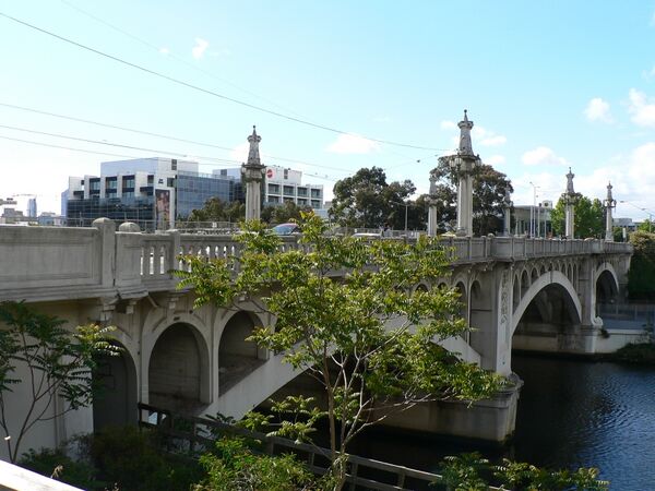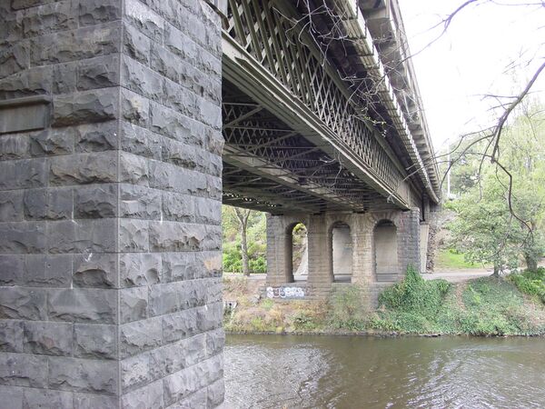 Queens Bridge, один из старейших оставшихся мостов в городе, был построен в 1889 году, отличался пятью коваными пластинчатыми балочными пролетами, и оказался внесенным в реестр Викторианского наследия[61][62][63]. Мост был построен подрядчиком Дэвидом Мунро и заменил деревянный пешеходный мост, построенный в 1860 году[64]. Morell Bridge, построенный в 1899 году, примечателен как первый мост в Виктории, который был построен с использованием железобетона[65][66][67][68]. На трех арочных пролетах моста расположены сложные украшения, включающие изображения дракона и декорированные фонари в викторианском стиле. Водостоки моста вымощены голубым камнем, с полосой битума посередине. Мост внесен в реестр Викторианского наследия[69].