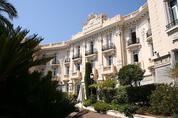 Отель Hermitage Monte-Carlo расположен на площади Бомарше, в самом центре Монте-Карло[20]. Он был построен в начале XX века по проекту монакского архитектора Жана Марке. Это большое, роскошное здание в неоклассическом стиле, обращённое к Средиземному морю[20]. Отель также является известным примером движения Прекрасной эпохи. Он отличается элегантными чертами и сдержанной утончённостью[30]. Потолок обеденного зала, иронично названного «Belle Époque», был спроектирован Габриэлем Ферье[20]. Зимний сад (Jardin d’Hiver) был разработан и создан Гюставом Эйфелем, который использовал стеклянные оранжереи и возведённые ученики, чтобы объединить классическую подлинность и технологии[20]. Зимний сад оформлен в мягких пастельных тонах, украшен торжественным освещением и фонтаном[31].