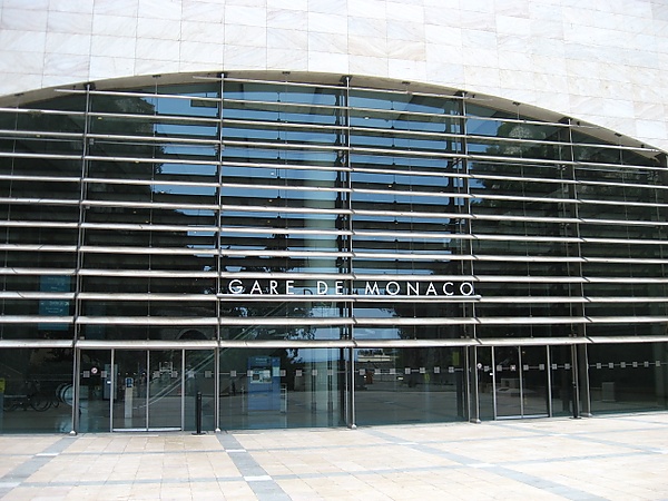 Железнодорожный вокзал Монако был впервые открыт в 1868 году, но позже был реконструирован. Работы были проведены по приказу князя Ренье III в 1958 году, в результате чего здание вокзала было перемещено, вследствие чего был изменён маршрут. Поезд стал пересекать долину Сент-Девот, а затем добираться до вокзала по туннелю[37]. Вокзал был встроен в склон холма, таким образом, в его внешнем облике сочетаются камень и бетон. Сочетая новое и старое, вокзал отражает слияние новой архитектуры Монако и старой французской архитектуры, а также свидетельствует о развитии эклектики в архитектуре Монако в XX веке[37].