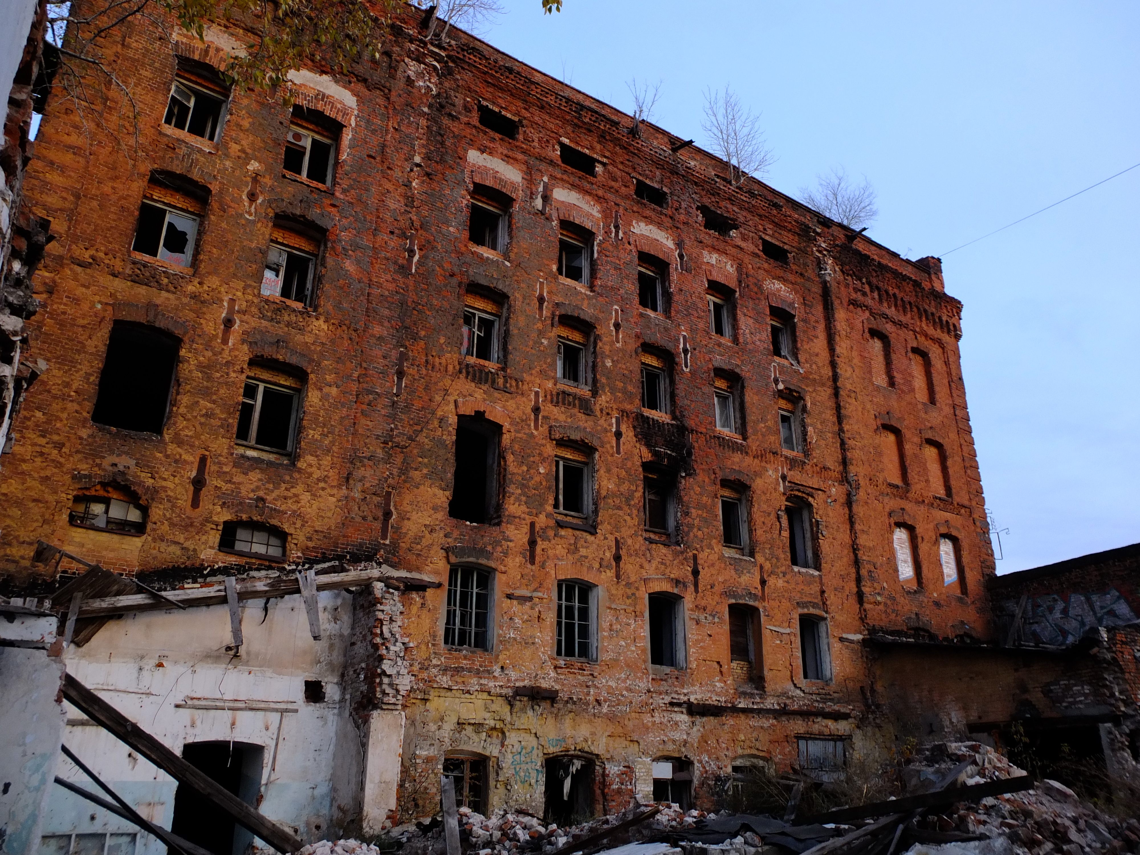 Многие постройки в Самаре были возведены в кирпичном стиле. Среди них выделялось здание городской пожарной части, возведённое в 1914 году по проекту З. В. Клейнермана (ул. Чернореченская, 55)[25]. На рубеже XIX—XX веков Самаре наблюдался стремительный рост промышленности, что привело к строительству новых мельниц, пивоваренных и кирпичных заводов, здания которых возводились в кирпичном стиле. В исторической части Самары сохранились уникальные промышленные предприятия мукомольной отрасли выполненные в краснокирпичном стиле: мукомольный комплекс Товарищества Я. Г. и И. Я. Соколовых (1906), мельница купцов Стройкова и Якимова (1903, арх. А. А. Щербачёв)[26].
