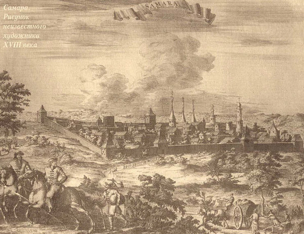 В 1688 году поселение получило статус города, что потребовало разработки первого межевого плана. Известно, что к началу XVIII века город протянулся узкой полосой по волжскому склону. В 1703—1706 годах восточнее старой крепости была выстроена новая земляная, ромбовидной формы. Планировка была бессистемной, с мелкими кварталами причудливых форм. Почти вся территория была занята жилой застройкой и только в крепости были сосредоточены административные, торговые и военные здания. Территории по берегам Волги и Самарки занимали пристани и амбары. К 1717 году в Самаре было 210 обывательских дома и 17 домов ясачных крестьян. Росло поселение медленно в силу пограничного положения и к концу XVIII века занимало 61,2 га территории, компактно вытянувшись вдоль берега Волги[1][2].