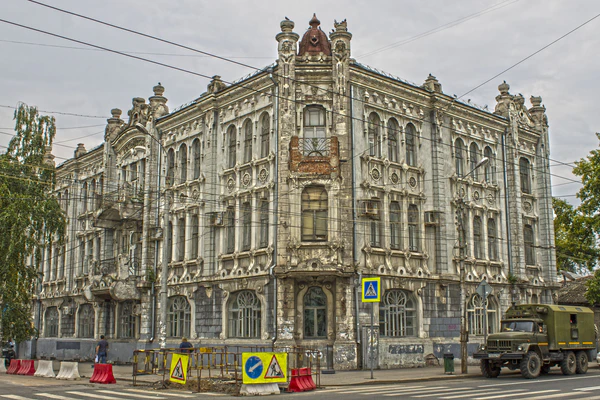Романтический модерн в Самаре воспроизводил в архитектуре принципы романтизма и был чрезвычайно разнообразным, обращаясь к разным стилям-источникам. Для неоромантизма в рамках модерна было свойственно обращение в первую очередь к наследию Возрождения и классицизма, памятникам древнерусского деревянного и каменного зодчества. Разновидностью романтического модерна стал мавританский стиль, опиравшийся на элементы архитектуры Востока (подковообразные арки, галереи и другое)[28].