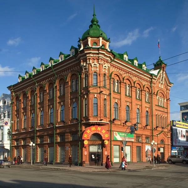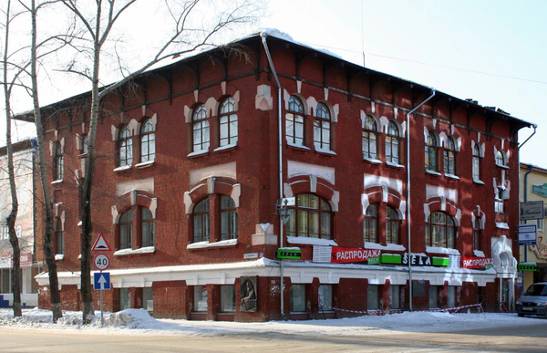В конце XIX века в томской архитектуре всё больше ощущается влияние «демократичного» стиля В. А. Гартмана — И. П. Ропета, который распространяется на светскую архитектуру. Мотивы русской архитектуры активно использует в своих проектах каменных домов В. В. Хабаров: харчевня «Славянский базар» (пл. Ленина, 10) и доходный дом А. Соболева (пр. Ленина, 89). Те же черты прослеживались в кирпичном здании Управления путей сообщения Томского округа (пл. Ленина, 1; 1882). По декоративному убранству здание напоминало древнерусский терем[19].