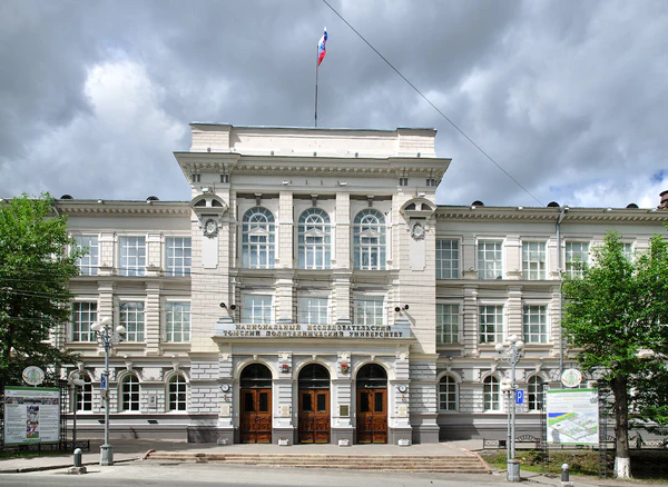 В архитектуре общественных зданий в этот период шёл процесс утверждения социалистического реализма. В архитектурном формообразовании стали доминировать имперские тенденции, помпезность, крупномасштабность. Самым ярким образцом данной тенденции стало величественное и торжественное здание 10-го корпуса ТПУ (1954)[51]. Интересными примерами советского классицизма в застройке выступали: учебный корпус Политехнического университета (1950—1955, арх. П. П. Кузнецов), Дом культуры ТЭМЗа по типовому проекту, здание КГБ — УФСБ (1950-е), здание общежития ТИРИЭТа (1955), жилой дом Томского областного комитета КПСС (1955)[52].
