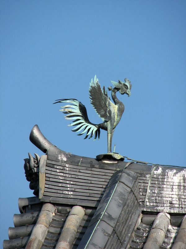 Для традиционной японской архитектуры вплоть до периода Мэйдзи основным строительным материалом являлось дерево. Причинами использования деревянных конструкций были доступность и простота изготовления. Изогнутые крыши в первую очередь связанны с тем, что они сделаны из свежего бамбука. При засыхании бамбук закручивается и становится твёрдым. Кроме того, деревянные конструкции лучше подходили для японского климата, позволяли обеспечить естественную вентиляцию помещений, а также позволяли легко переместить сооружение, разобрав его и собрав на новом месте[1].