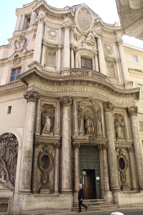 Наиболее успешным мастером зрелого итальянского барокко был выдающийся архитектор, скульптор, живописец, теоретик и поэт, драматург и театральный декоратор Джан Лоренцо Бернини. Он является автором наиболее прославленных ансамблей барочного Рима: площади Св. Петра со знаменитой колоннадой, фонтанов площади Навона. Гораздо менее удачливым соперником великого Бернини был гениальный Франческо Борромини, из-за чего он и окончил жизнь самоубийством в 67 лет. Однако его немногие завершенные проекты: церковь Сан-Карло алле Куатро Фонтане, Сант-Иво алла Сапиенца, как считают специалисты, глубже по замыслу и сложнее по формообразованию, чем впечатляющие ансамбли, созданные Бернини[14]. Именно Борромини смело отходил от классических канонов, авторитетных решений, прежних правил, проектировал сооружения невиданной ранее сложности. Доказательством служит знаменитая «волна» фасада церкви Сан-Карло или силуэт двубашенной церкви Сант-Аньезе ин Агоне на Пьяцца Навона.