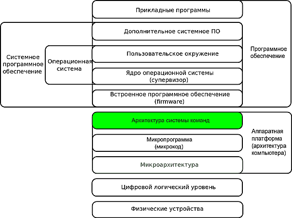 Архитектура набора команд (англ. instruction set architecture, ISA) — часть архитектуры компьютера, определяющая программируемую часть ядра микропроцессора. На этом уровне определяются реализованные в микропроцессоре конкретного типа: