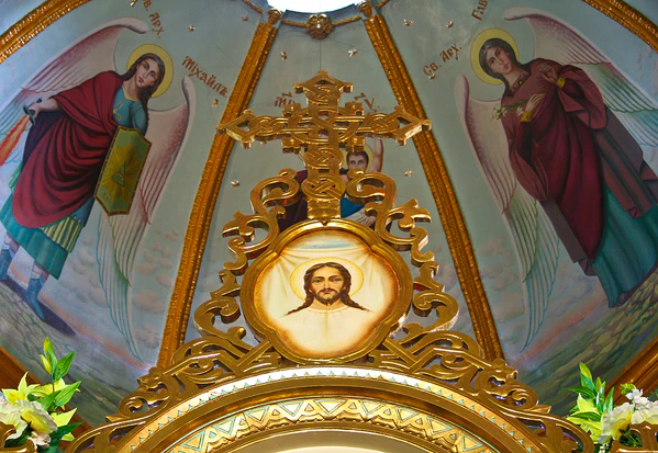 Учитывая очень маленькую площадь, которая сохранилась от некогда великого храма, а также то, что большая часть нынешней церкви — это пристройка пятидесятых годов, помещения не позволяют увидеть первичную структуру интерьера церкви. Иконостас церкви сделан из дубового дерева с резьбой и позолотой, происходит из XIX века. Содержит 16 икон. Пространство между иконами разделено шестью резными золочеными колонками сложной формы. Второй ярус иконостаса занимают две боковые системы икон, над которыми установлены скульптурные изображения ангелов с крестами над ними, надпись «Христос Воскресе» и средняя икона, выше которой размещено изображение Иисуса Христа. С 1963 года до 1990 иконостас находился на хранении в Свято-Троицком кафедральном соборе. Храм имеет также и отдельные старые ценные иконы. Интерьер был заново расписан в 2000-х годах.