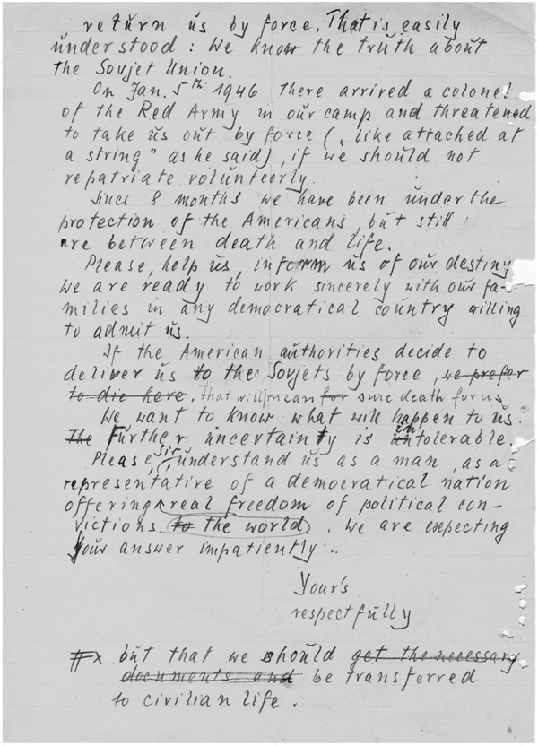 Вместе с тем Арцезо активно выступал против возвращения членов РОА в СССР и вёл соответствующую работу в лагере[64].