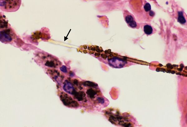 Амозит (коричневый асбест) и крокидолит являются наиболее опасными из асбестовых минералов из-за их долгого нахождения в легких вдохнувших их людей.